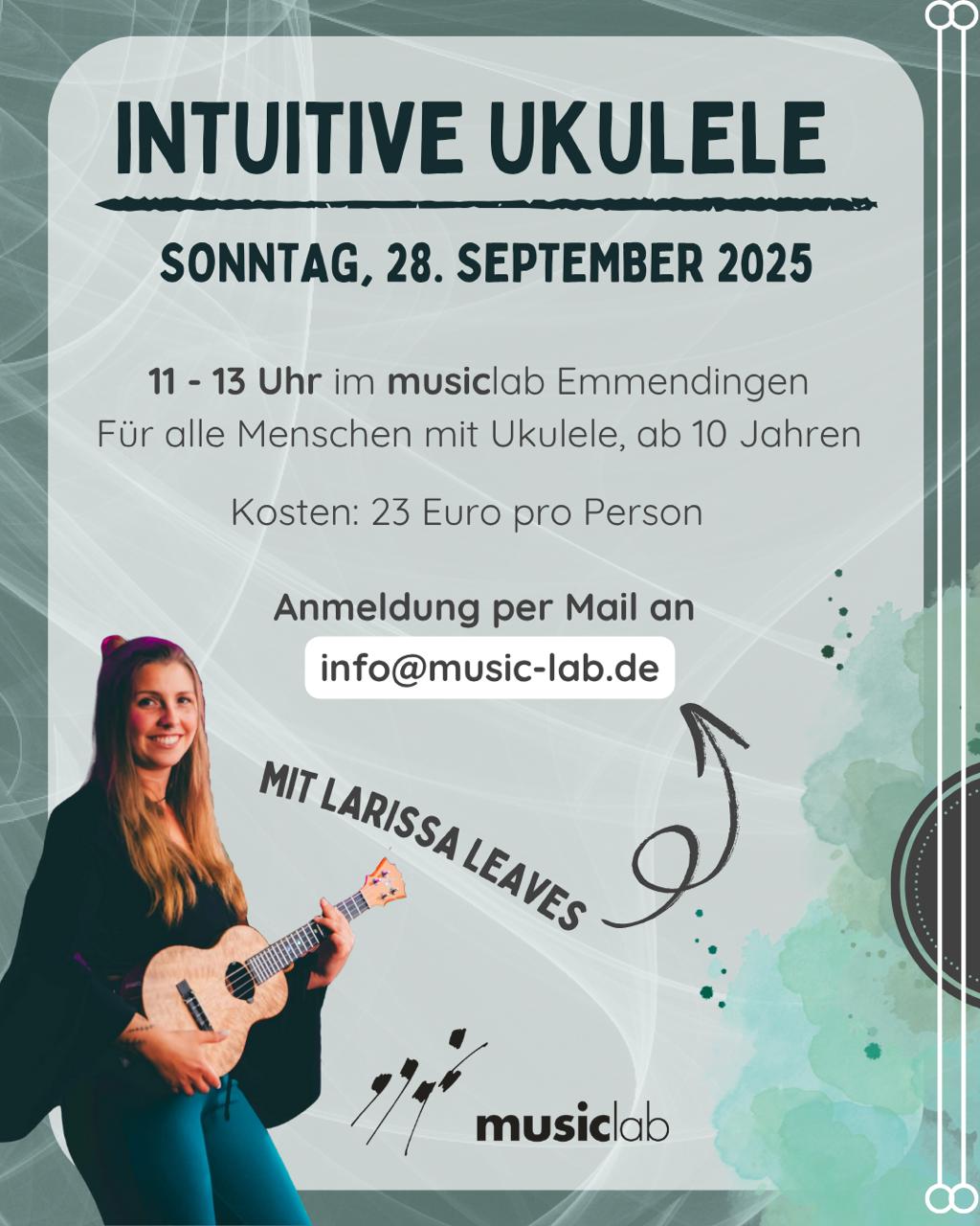Dieser Workshop richtet sich an alle, die Musik nicht nur spielen sondern auch spüren möchten und lädt dazu ein, im eigenen Tempo zu forschen, zu improvisieren und dich von der Ukulele überraschen zu lassen.